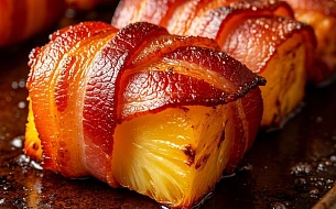 Аппетитное сочетание солёного бекона, сладкого ананаса и пряного соуса