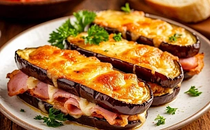Бутерброды из баклажанов с ветчиной и сыром