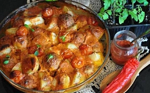 Готовим картофель с фрикадельками в томатном соусе