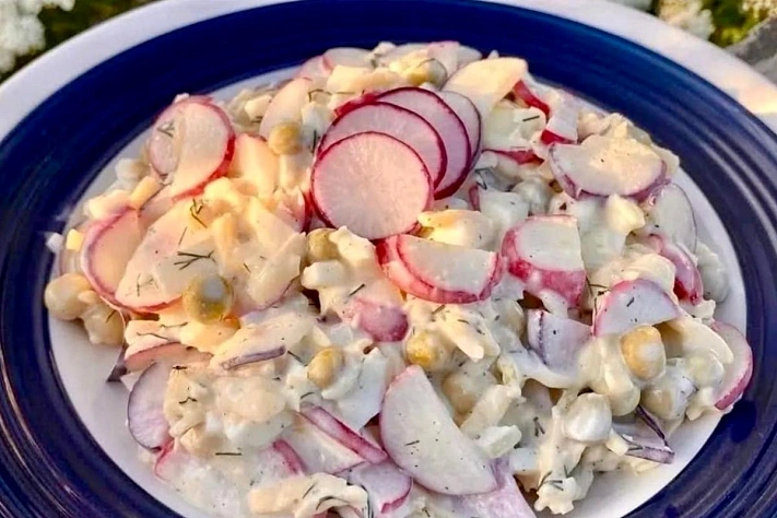 Этот салат — маленькое напоминание о том, как важно радоваться простому. В каждом ломтике редиса — свет, в каждом яйце — забота, в каждом листике укропа — весна. Простой рецепт, с весенним вкусом.