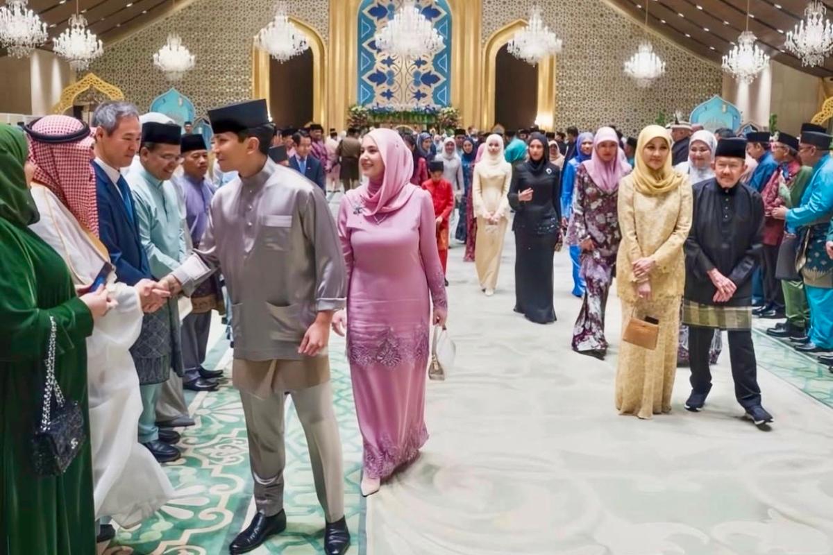 Это был не светский выход в западном смысле слова, а куда более характерная для Брунея сцена: дворец, религиозный праздник, протокол приветствий и та тихая роскошь, которая здесь всегда говорит не громче традиции.