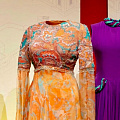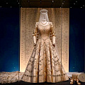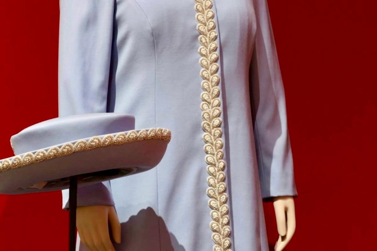 Отдельное удовольствие здесь — в диапазоне. Экспозиция не сводит королеву к одним только парадным платьям. Да, вечерние образы ожидаемо притягивают взгляд первыми: светлые бальные силуэты, отделка камнями, торжественные ткани, сдержанная, но очень дорогая дипломатия цвета. Но рядом с ними стоят дневные ансамбли, яркие пальто, шляпы, практичные костюмы и вещи, в которых становится понятнее не королевская сказка, а профессиональная дисциплина публичной женщины, семь десятилетий существовавшей на глазах у страны и мира.
