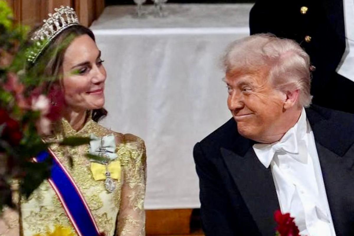 Кэтрин в тиаре «Узелки любви» на госбанкете в честь визита Дональда Трампа