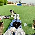 Коты здесь живут не «в общем котле», а каждый своим ритмом. Рыжий поджимает лапы у солнечного бордюра и щурится на воду. Чёрно-белый сторож обхода терпеливо сидит напротив чужих кроссовок и изучает шнурки — у него важное дело. Серый «механик» заглядывает в переноску и уходит проверять миски. Удивительно, как быстро в людях выключается желание гладить всех подряд — вместо этого появляется уважение к границам и внимательность к мелочам.