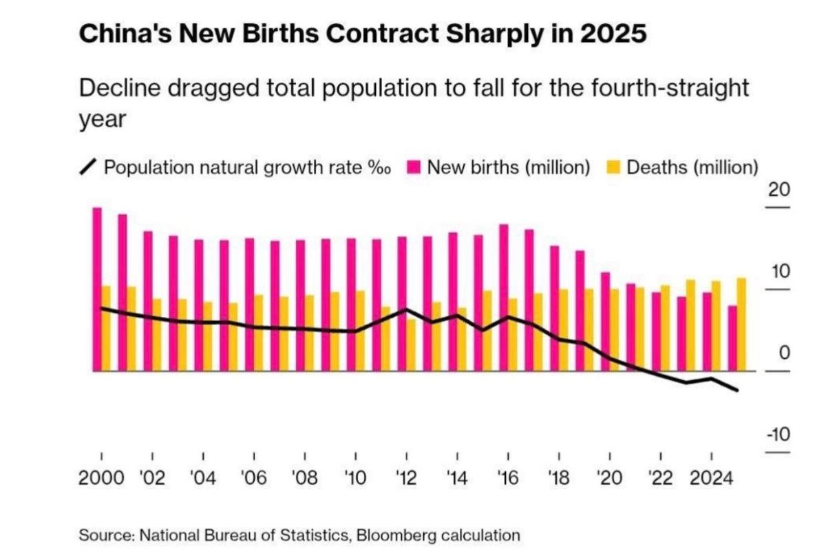 Для Китая рекордно низкая рождаемость — это не только про детей и семьи, но и про скорость будущего: чем меньше новых поколений, тем больше цена каждого экономического решения, которое раньше можно было «растворить» в росте населения.