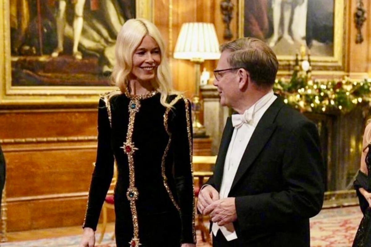 Отдельная линия банкета — немецкий след среди звёздных гостей. В списке приглашённых — Клаудия Шиффер, одна из главных икон подиума 90-х. На фото из зала она идёт по ковру в чёрном бархатном платье с золотым декором и затем поднимает бокал за короля всего в нескольких местах от почётного стола. Для принца Уильяма, выросшего на плакатах супермоделей, это почти кадр из собственной юности: девушка с обложки теперь сидит рядом с его отцом на государственном банкетe.