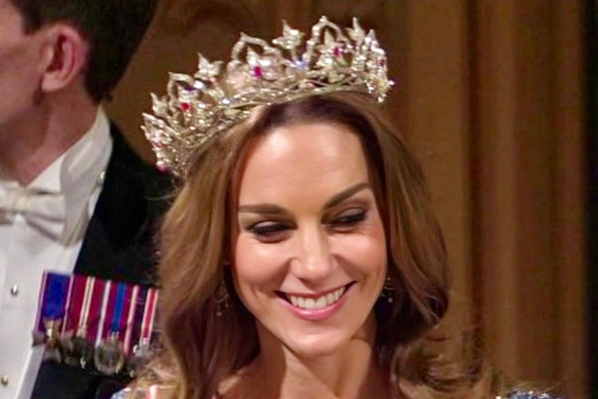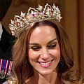 Главная интрига вечера — тиара на голове принцессы Кэтрин. Восточная тиара (Oriental Circlet) была создана ювелирным домом Garrard в 1853 году по эскизам принца Альберта как подарок королеве Виктории. Сначала украшение было усыпано опалами — любимыми камнями Альберта, а позже их сменили рубины. Тиару носили королева Виктория, королева-мать и королева Елизавета II, но до этого момента она ни разу не появлялась на Кэтрин. Теперь же редкая реликвия вернулась в большой свет уже в статусе семейного наследия, доступного новому поколению.