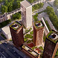 По данным публикаций, в семиэтажном корпусе ресторан планируют разместить на втором этаже, а офисные помещения — с третьего по седьмой. Этажность трёх жилых башен пока не раскрывается; в сообщениях фигурирует, что они будут объединены общей подземной частью с парковкой.