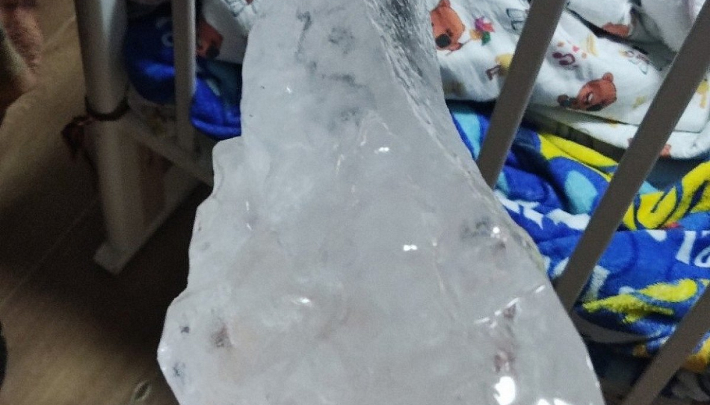 В Московской области во время чистки крыши многоквартирного дома глыба льда попала в жилую квартиру. Сосулька чуть не нанесла травмы двухлетнему ребёнку.