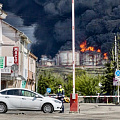 На кадрах с места видно плотное задымление, которое распространяется в сторону жилых районов. Дымовая завеса держится над городом, местные жители фиксируют сильный запах гари и оседающий тёмный налёт.