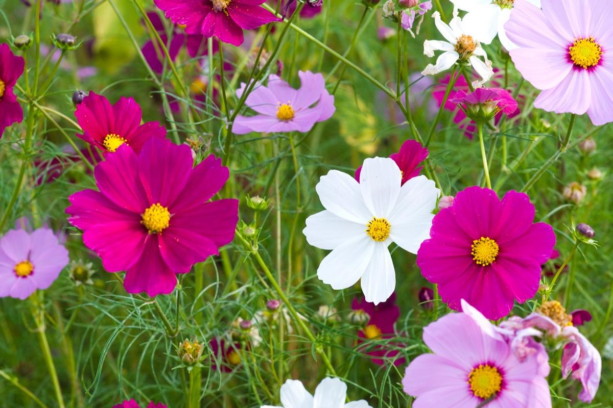 Космея. Для этого нежного цветка достаточно солнечного участка. Пересадку не любит.
