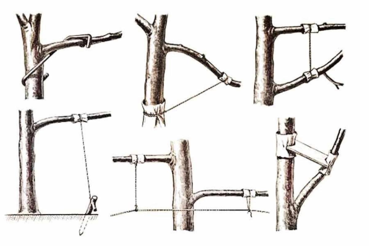 Чаще всего приём применяют на яблоне и груше, хорошо откликаются и многие косточковые — слива, вишня, алыча. На ягодных кустарниках принцип похожий: отдельные сильные побеги можно слегка отвести в сторону, чтобы лучше осветить куст и распределить нагрузку ягодами, но там чаще работают обрезкой и прореживанием.