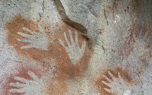 Это отпечатки рук, сделанные охрой на острове Сулавеси