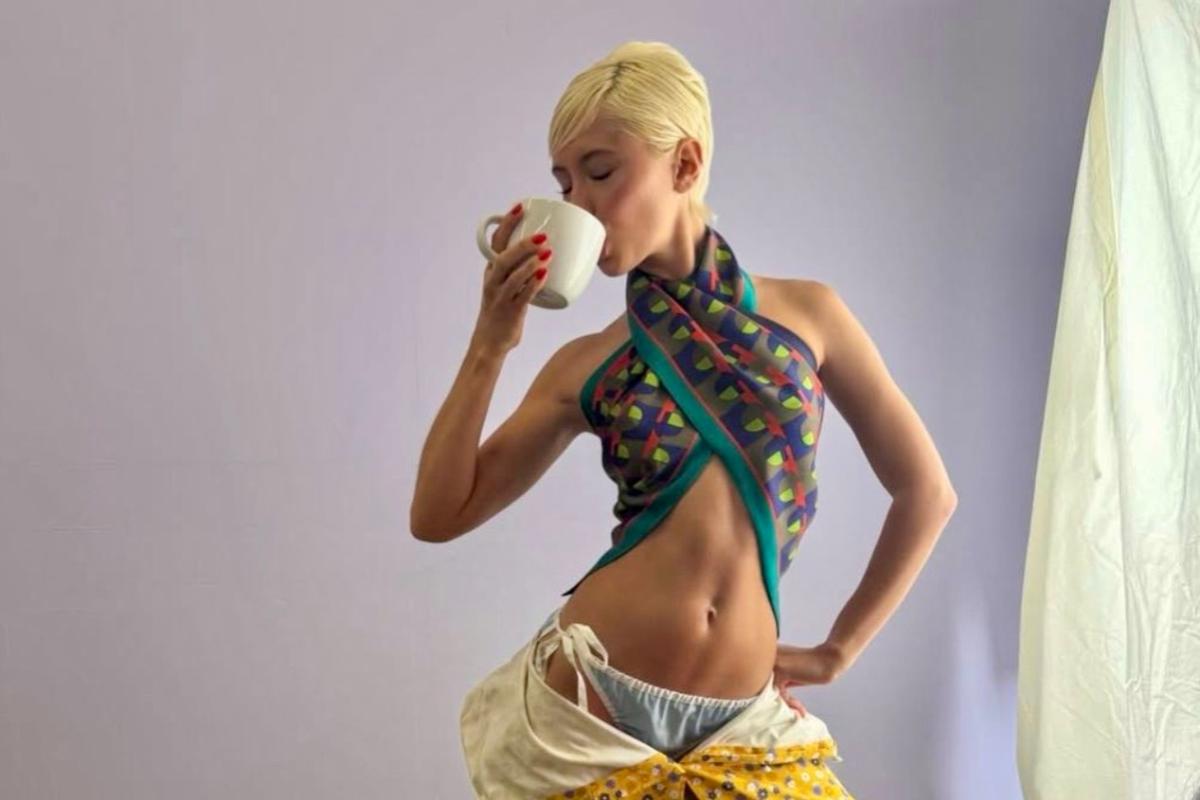 На снимках Айрис — в вещах Miu Miu: собранность формы и детская дерзость в одной связке. Это тот случай, когда бренд не столько «одевает», сколько задаёт интонацию. Визуально всё держится на контрасте: взрослая пластика тела и маленький, почти театральный реквизит. Кукольный домик здесь не милота, а декорация для разговора о контроле: кто в этой истории хозяин пространства — модель, камера или чужие ожидания.