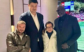 Бекхэм и Джеки Чан рядом с гигантами баскетбола
