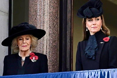 Принцесса Кэтрин и королева Камилла на балконе у Кенотафа