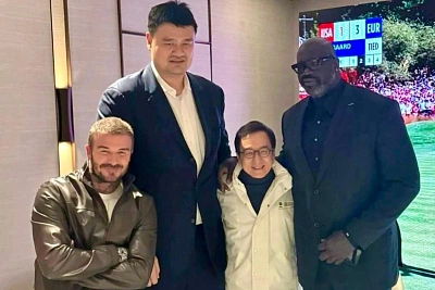 Бекхэм и Джеки Чан рядом с гигантами баскетбола