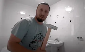 Рассерженный рабочий на камеру разнёс ванную комнату