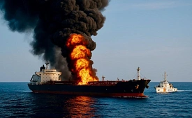 Судно горит, один моряк пропал без вести, власти готовятся к ликвидации послед...