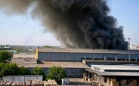 В селе Абай огонь охватил складской ангар, пожарные работают по повышенному ра...