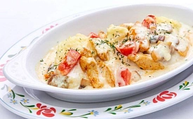Нежное куриное филе в сливочном соусе с перцем и сыром