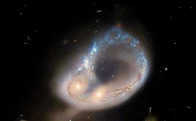 Космический телескоп запечатлел почти осевое столкновение, превратившее две га...