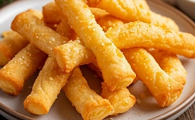 Простые сырные палочки из слоёного теста с кунжутом и паприкой