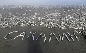 Тысячи туш тихоокеанской сельди выбросило на побережье близ Корсакова